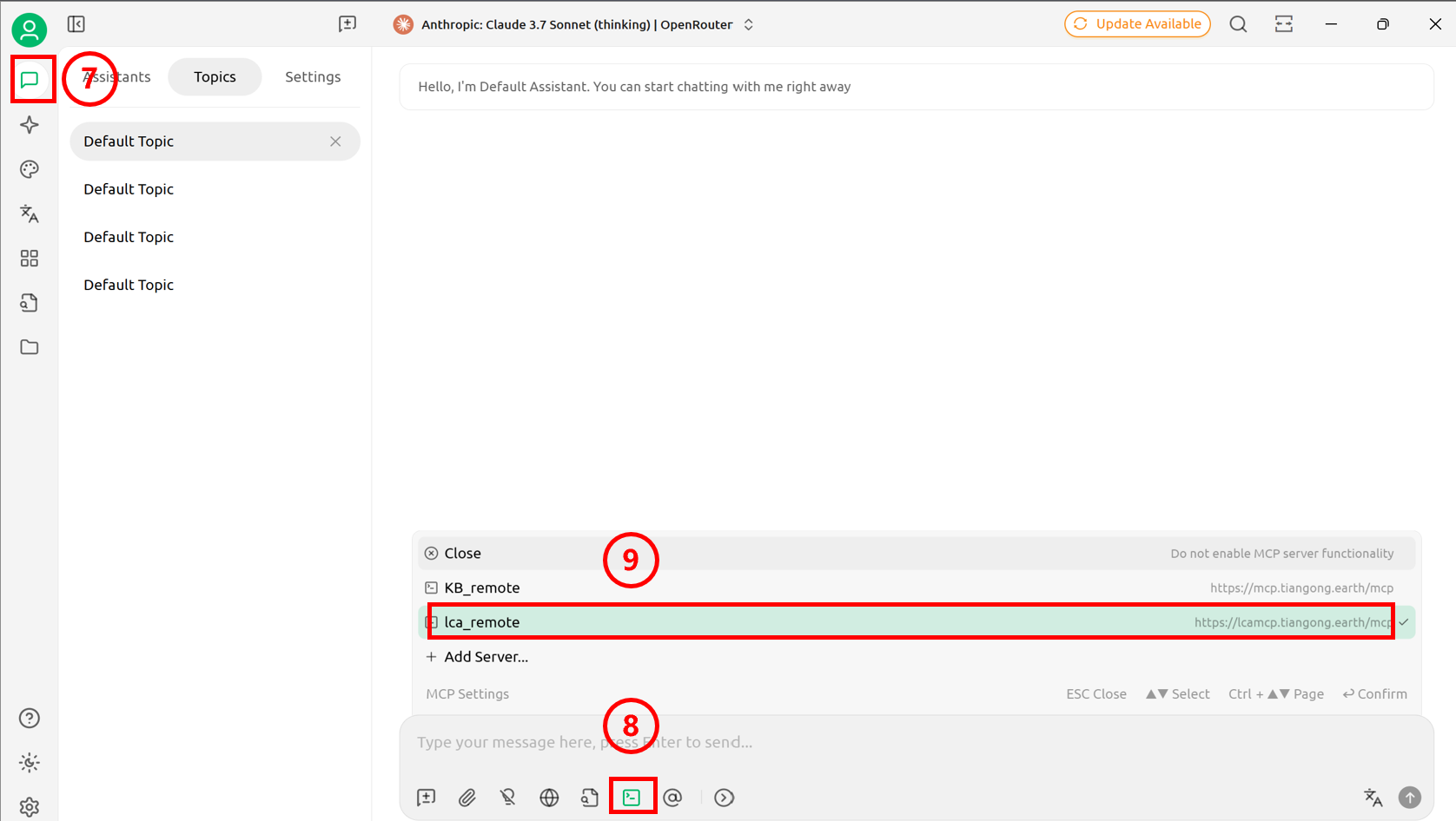 MCP服务选择:在弹出的选项中选择需要使用的MCP服务器。