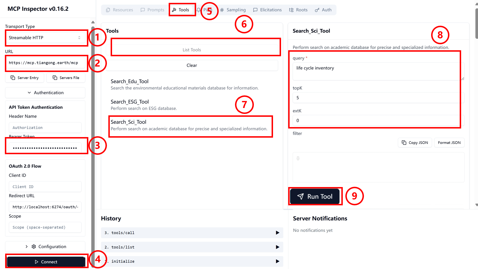 Tool Selection: Click the Search_Sci_Tool button in the list.