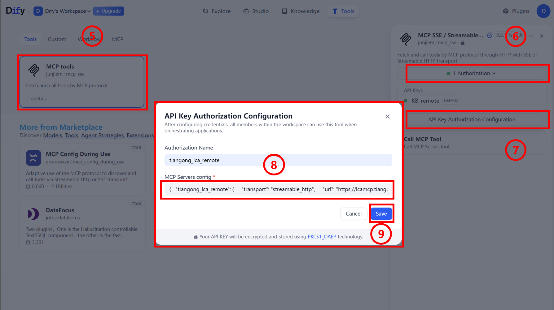 Tool Market Download: Find and download the MCP tool in the Market place (the highlighted tool in the figure is the recommended tool).