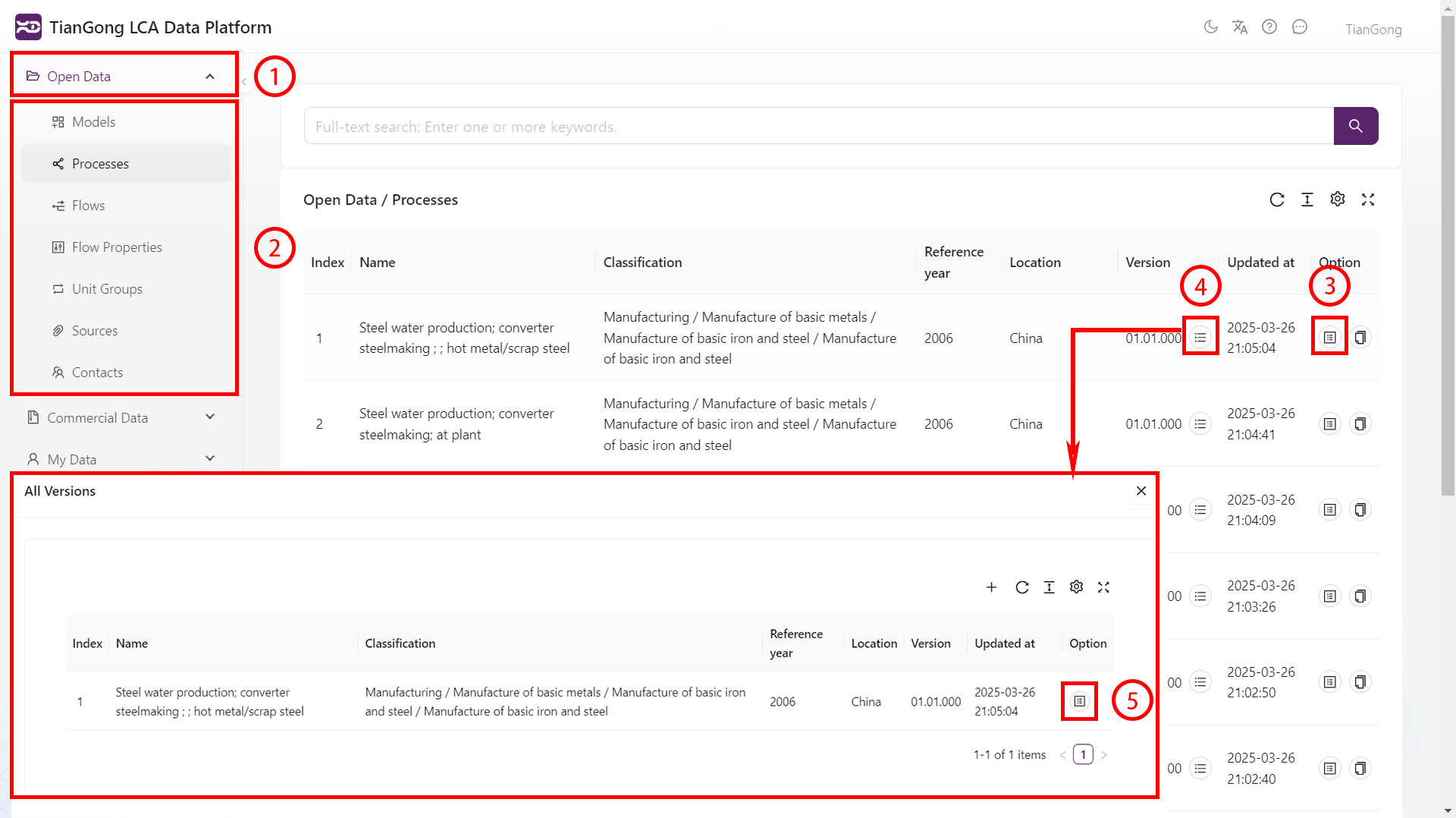 - Open Data Panel: Locate the left navigation bar and click "Open Data" or "Commercial Data" to activate the data management interface.