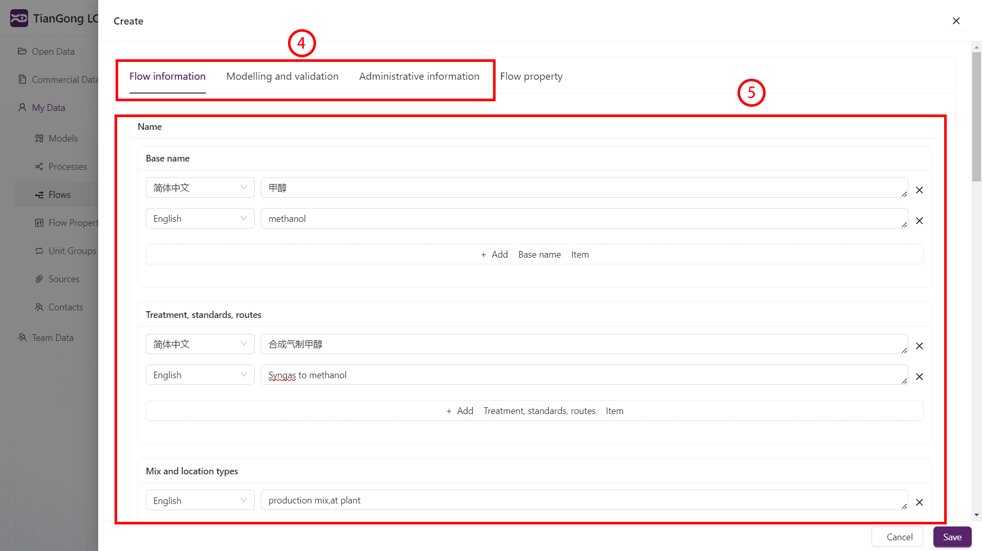 +,选择或新建流属性,并为每项填写平均值、量值参考等信息。 - 保存后返回过程或模型继续引用。